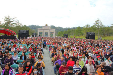 二十八日下午,神奇的天候,讓當場七千多位海內外貴賓家人們感動、 歡欣、震撼!原本天空是陰霾的,雨滴斷斷續續降下,卻在活動開始的前三十分鐘,雨神歸隱,留下 清涼的氣流,當一首《母光常照我心》之歌「朝陽昇起……」響起,就這麼地神奇的, 光曦應聲,忽地顯亮!在場人人無不嘖嘖稱奇,因為一分鐘之前天空還是陰霾的啊!歌聲越嘹亮, 光暈越顯亮!莫非雨神先來洗塵,陽光緊隨駕到啊!